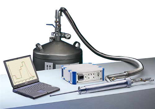 利用控制低溫氮氣的溫度和流量來實現外部系統的冷卻,低溫度能夠穩定控制在-180℃。液氮在儲罐中蒸發形成低溫氮氣,這種氮氣通過蒸發來作為冷卻介質,以實現準確的溫度控制。液氮氣體化器能夠進行調節,大程度地減少液氮的耗用,自動調節制冷功率和氣體流量。低溫氮氣通過隔熱的柔性金屬管輸送至待冷卻的樣品上,僅需幾分鐘即可提供-180℃的低溫氮氣流。如有需要準確和穩定的氮氣流,還可以安裝后續的加熱模塊,將低溫氣流加熱至設定溫度,確保流速平穩、溫度準確。